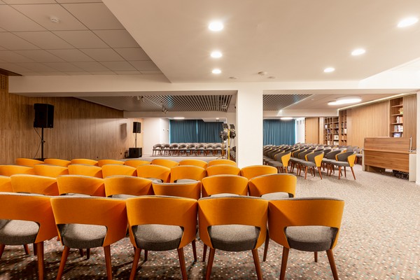 • Конференц-зал (до 200 чел.), библиотека (до 20 чел.), переговорная комната (на 6 чел);